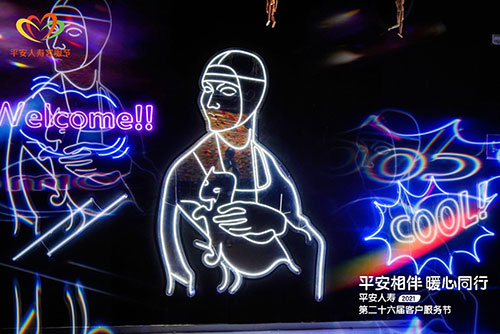 至美瞬間體驗(yàn)區(qū)是由原型白色幕布組成的半封閉空間。站在原地不動(dòng),工作人員會(huì)揮舞光束畫出華麗的圖案。在360°環(huán)繞的50臺(tái)攝像機(jī)一起拍照,從而也體現(xiàn)出光影背后的匠心。